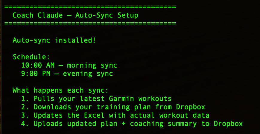 Coach Claude is still coaching. Still reading my heart rate data. Still telling me to sleep more. My web app is live but only for me. Garmin ghosted me. I’ll likely finish my race before Garmin approves my application.
